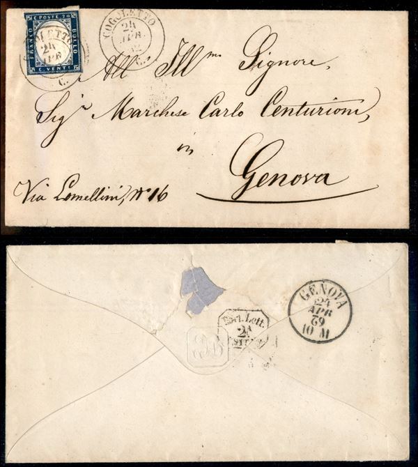 Cogoletto (P.ti 10) - 20 cent (15E) su busta per Genova del 24.4.62 - strappo a sinistra prima dell’uso
