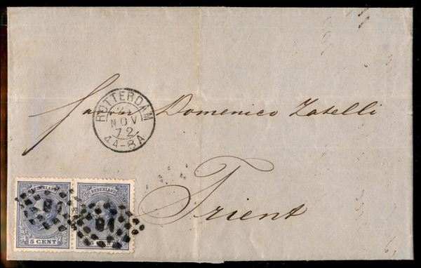 Coppia del 5 cent (7) su lettera da Rotterdam a Trento del 21.11.1872