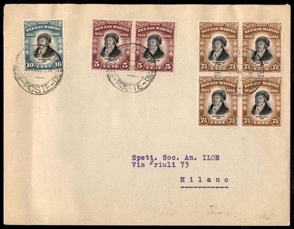 Delfico - coppia 5 cent + quartina 7 1/2 cent + 10 cent (193/95) su lettera del 1939 per Milano