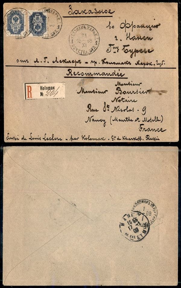 Due 10 kopechi (69) - raccomandata da Kolomak a Nancy del 31.12.08