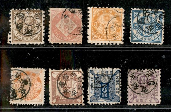 Francobolli per telegrafo - 1885 - Insieme di 8 valori (1/3+5/9) - usati - lievi difetti da esaminare