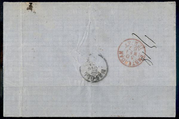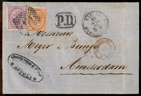 Lettera da Napoli per Amsterdam del 25 mag. 67 affrancata con 10 cent + 60 cent (17 + 21)