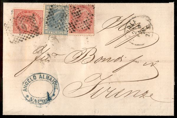 Lettera da Napoli per Firenze del 27 feb. 76 affrancata con due 40 cent + 20 cent (20 + 26)