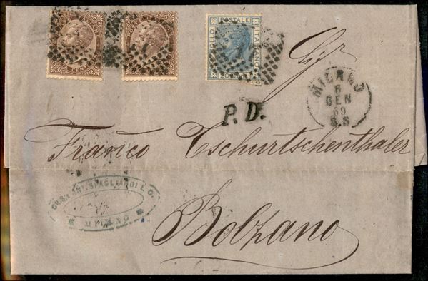 Lettera per l'Austria con due 30 cent + 20 cent (19 + 26) - da Milano 6 gen. 69 per Bolzano con bollo P.D.
