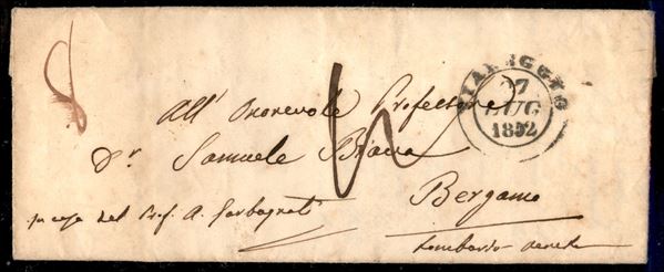 Letterina da Viareggio a Bergamo del 27.7.52 - 8 di tassa - "pagata c 60" a penna al retro