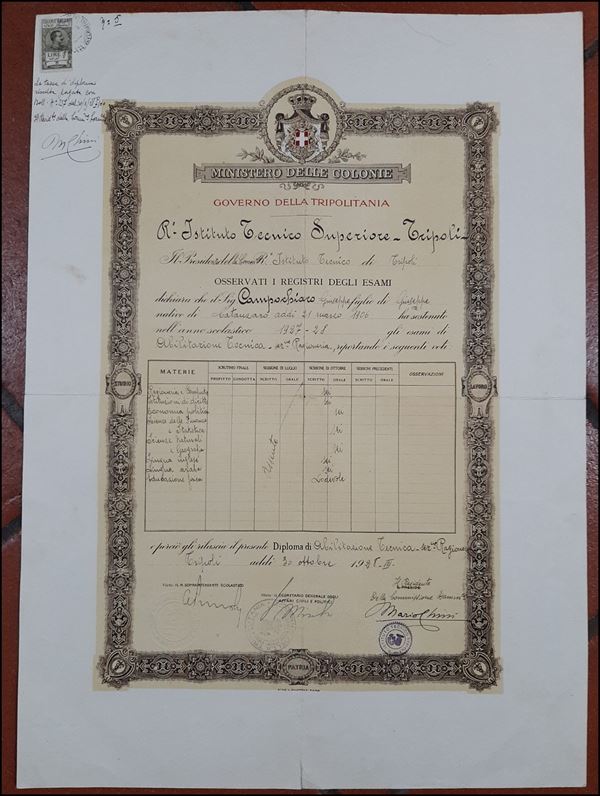 Marca da Bollo da 3 lire su Diploma del Governo della Tripolitania del 30.10.28