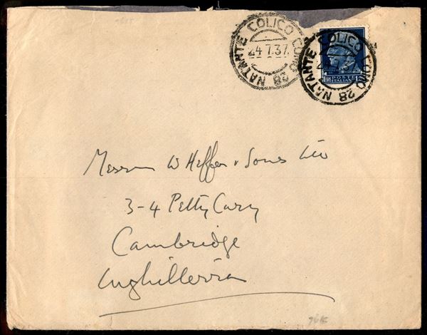 Natante Colico Como 28 - 1,25 lire Imperiale (253) su busta per Cambridge del 24.7.37