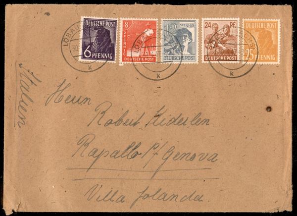 Occupazione Alleata - busta da Lobau a Rapallo del 30.4.47 con affrancatura di 75 pfenning (944/945 + 947 + 951/952)