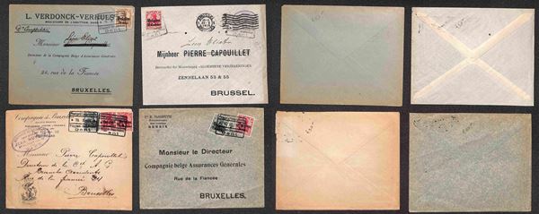 Occupazione Tedesca - 1915/1916 - Quattro buste con diverse affrancature del periodo