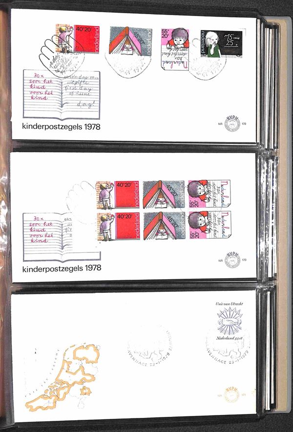OLANDA - 1973/1983 - Collezione di 90 buste FDC del periodo tutte diverse in album Poststukken