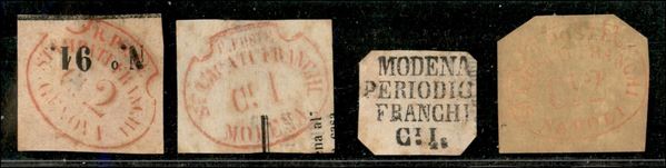 Periodici/Stampati Franchi - Genova + Modena (2) + Napoli - 4 frammenti