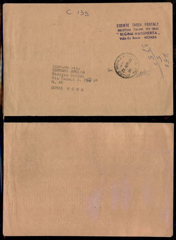 Piego Braille in franchigia da Monza a Roma del 23.9.75 - Raybaudi