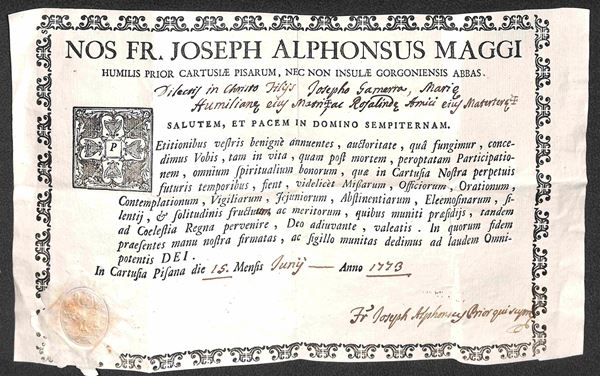 Pisa 15.6.1773 - Bolla con grande sigillo a rilievo