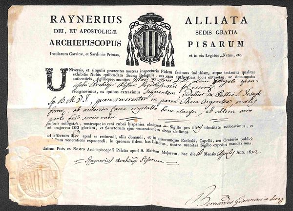 Pisa 16.4.1822 - Bolla con grande sigillo a rilievo