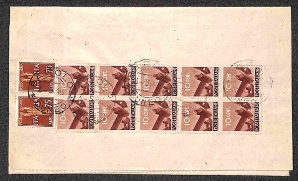 Plico affrancato al recto con Imperiale aerea coppia 75 cent + Democratica blocco di dieci 10 cent da Barolo 3.5.46 per Narzole
