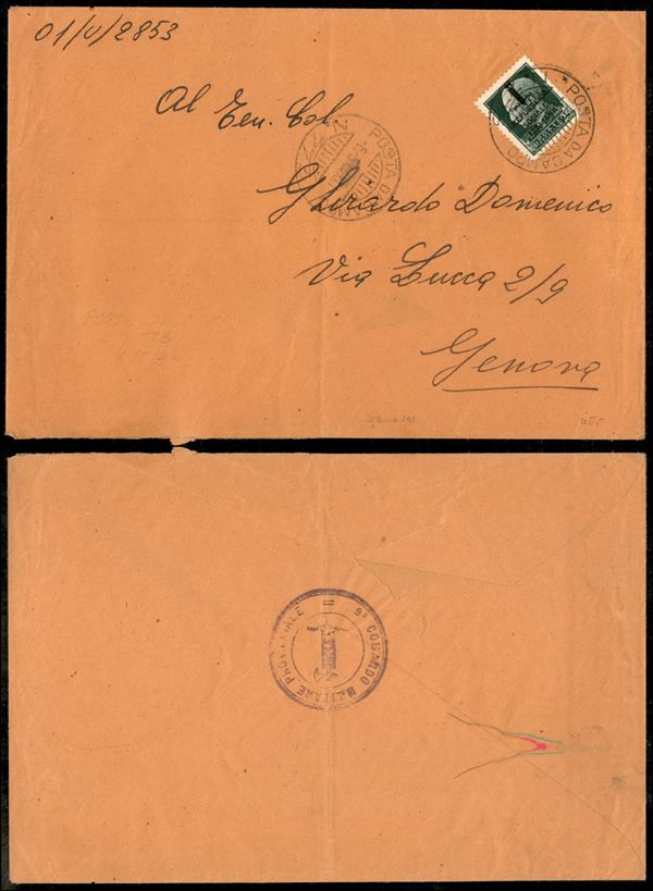 Posta da Campo N. 773 su 25 cent (491) - busta per Genova del 6.5.44