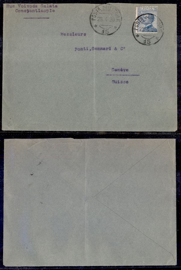 Posta Militare 15 - 25 cent (83 - Regno) su busta da Costantinopoli a Ginevra del 28.4.20