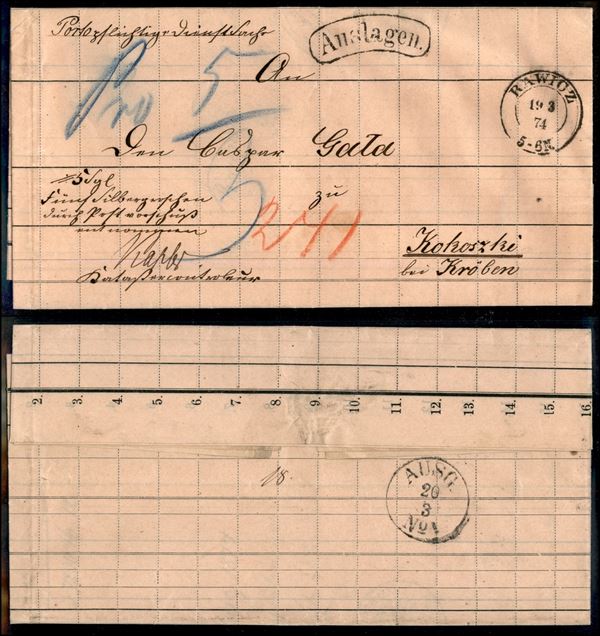 Prussia - Lettera con denaro da Rawicz a Kokoszki del 19.3.74