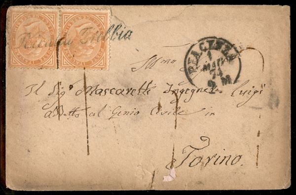 Rivalta Trebbia (Pti 5) - Coppia del 10 cent Torino (T17) su bustina per Torino del 1.5.74