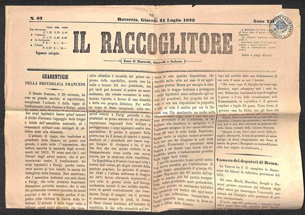 RoveredoI.R. Uffici delle Imposte - 1 kreuzer (2 I) su giornale del 24.7.79 - corto in basso a destra