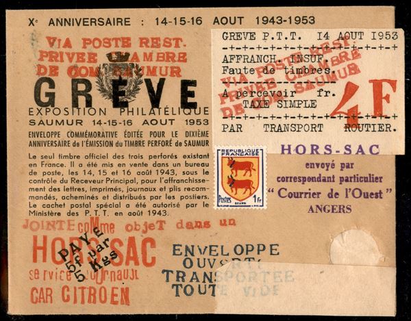 Saumur - 1953 (14 agosto) - Greve Esposizione Filatelica - Posta Privata