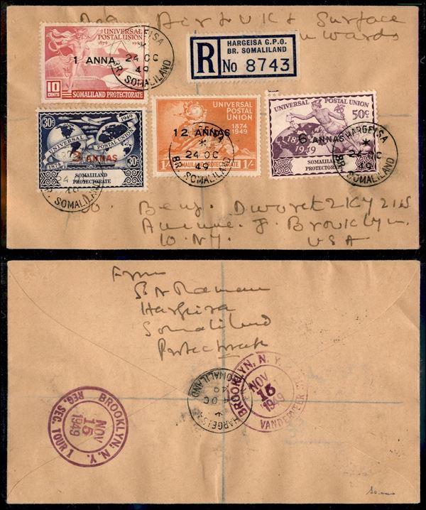 Somaliland Protectorate - UPU (105/108) - raccomandata da Hargeisa a New York del 24.10.49
