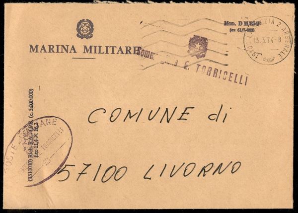 Sommergibile E. Torricelli - busta in franchigia da La Spezia a Livorno del 13.3.74