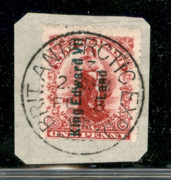 Spedizione in antartide - 1908 - 1 penny soprastampato King Edward VII Land (1) - usato su frammento - annullo filatelico Brit. Antartic Exped (Feb 3 08)