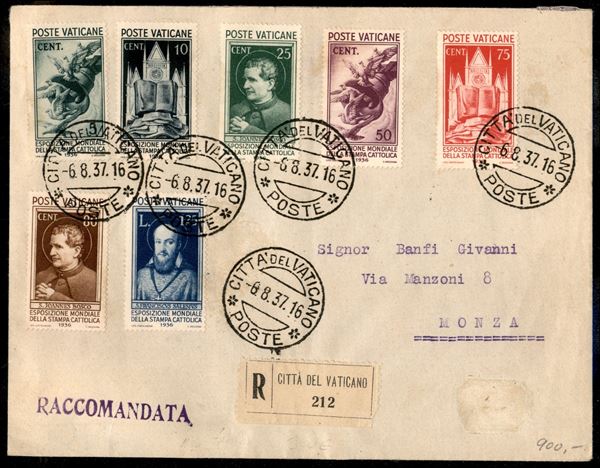Stampa Cattolica sette valori (47/53) su raccomandata per Monza del 8.8.37