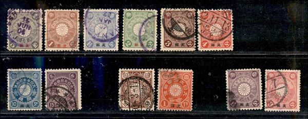 Uffici postali in Cina - 1900 - Insieme di 12 valori dell'emissione (1/6+9/10+13/14+17/18) - usati