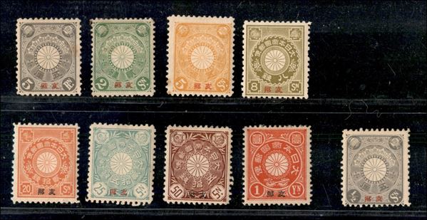 Uffici postali in Cina - 1900 - Insieme di 9 valori dell'emissione (1+4+7/8+11/14+16) - gomma originale - piccoli difetti da esaminare