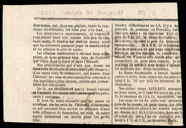 1 cent (24) con parte del vicino strappato con la fascetta - frammento di giornale del 16.10.72 da Clermont de loire - uso tardo