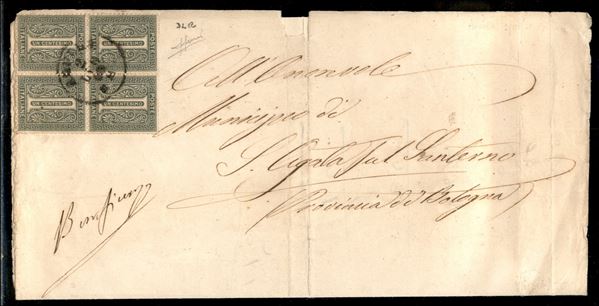 1 cent De La Rue (L14) in quartina su piego da Aquila per Bologna del 2.7.65 - Sorani (1.500)