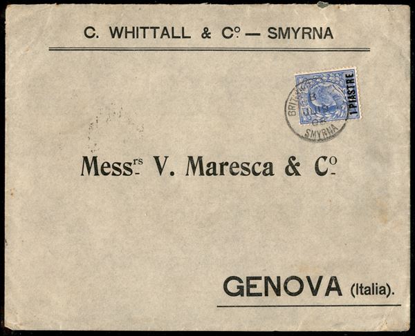 1 piastra su 2 1/2 pence (23) - busta da Smirne a Genova del 19.7.08