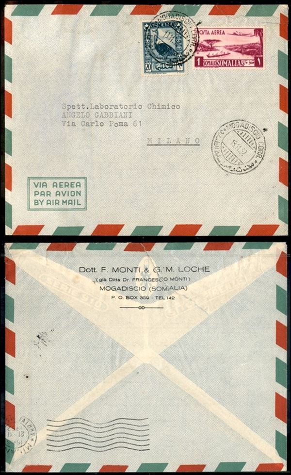 1 somalo (6 Aerea) + complementare - aerogramma da Mogadiscio a Milano del 13.11.52