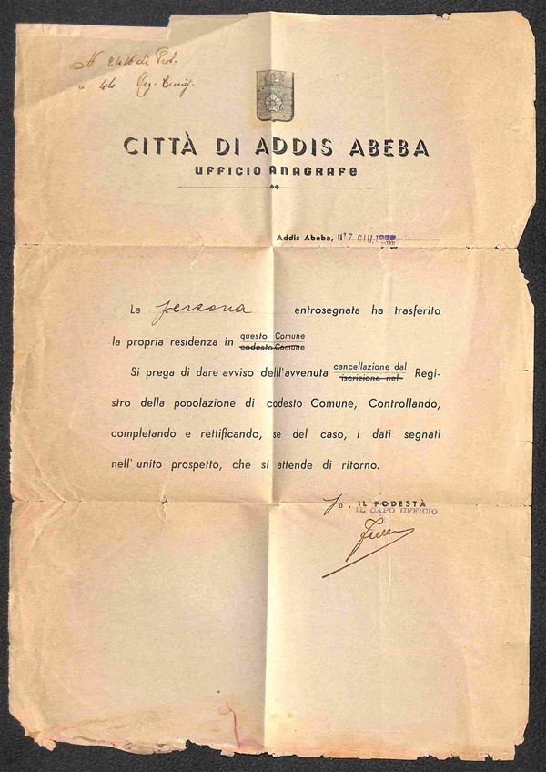 10 cent (1) su piego da Addis Abeba del 19.6.39