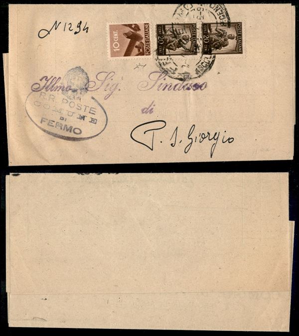 10 cent (543) + coppia del 20 cent (544) - piego da Fermo a Porto S. Giorgio del 1.4.46 - Chiavarello