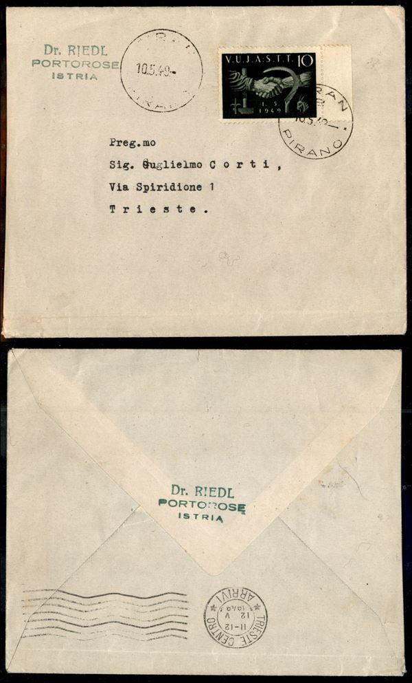 10 lire (6) isolato su busta da Pirano a Trieste del 10.5.49 (200+)
