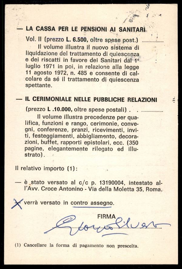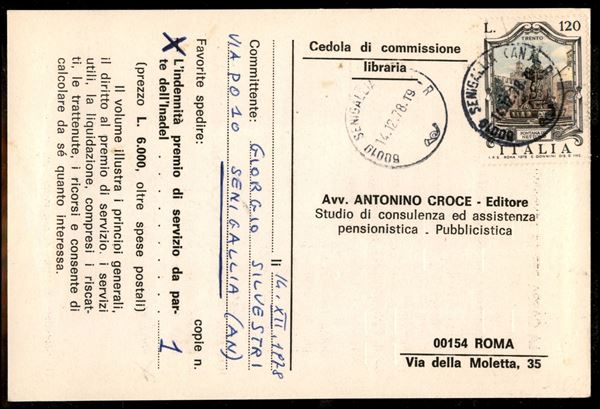 120 lire Fontane (1432) isolato su cedola di commissione da Senigallia a Roma del 14.12.78