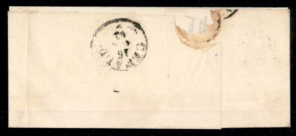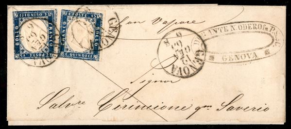 15 cent (11) - due colori diversi tete beche su testatina di lettera da Genova a Cefalù del 12.1.63 - pezzo di sinistra corto in verticale