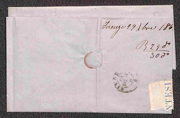 15 cent De La Rue (L18) con intero bordo foglio ripiegato al retro - lettera da Firenze a Livorno del 29.12.63