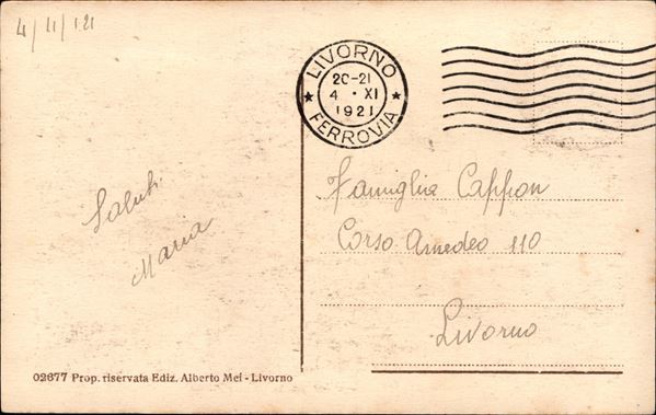 15 cent Vittoria (121) isolato su cartolina in tariffa da Pisa a Livorno del 4.11.21 - Firma Chiavarello