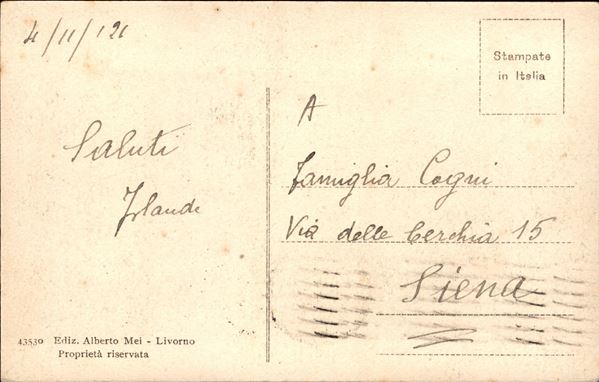 15 cent Vittoria (121b - dentellato 14 x 13 1/4) isolato su cartolina in tariffa da Livorno a Siena del 4.11.21 - Firma Chiavarello