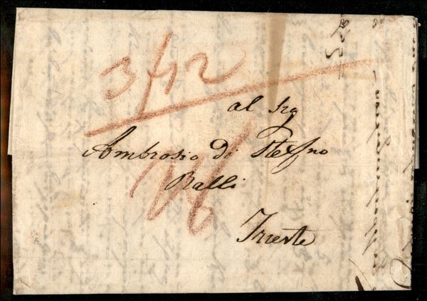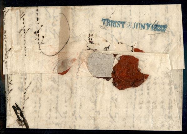 1822 - Lettera per Trieste (testo in greco) con parte di sigillo in ceralacca (Uff. Contumaziant) - tassata