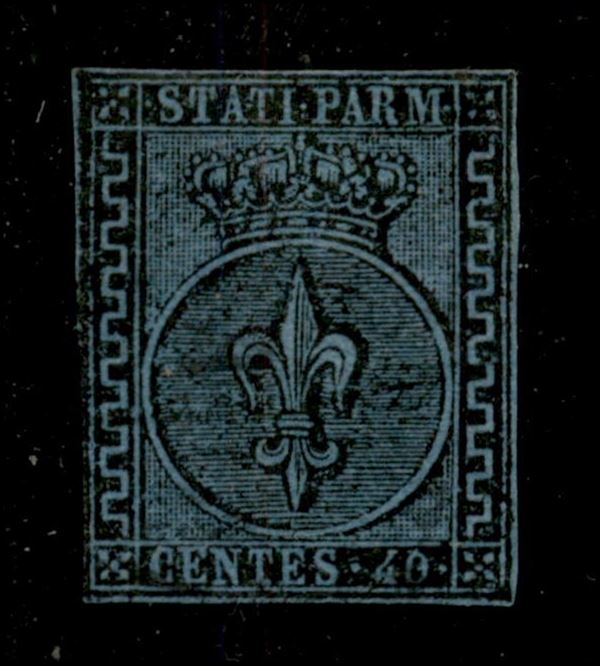 1852 - 40 cent (5) nuovo con gomma originale - ritagliato strettamente lungo il disegno (rasente a sinistra) - A. Diena