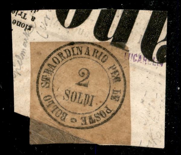 1854 - 2 soldi (1 - Per Giornali) su frammento di giornale