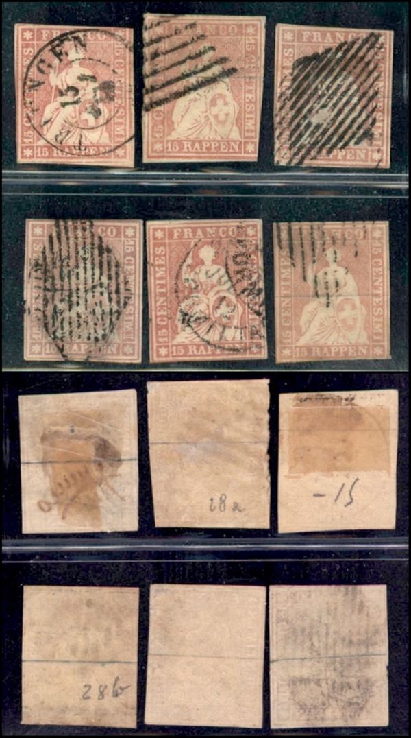 1854 - Sei 15 rappen (15) usati - margini corti - da esaminare