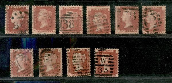1858 - Dieci 1 penny (16) usati - Tavole diverse (73/74 + 150 + 152 + 155 + 158 + 186 + 190 + 200/201)