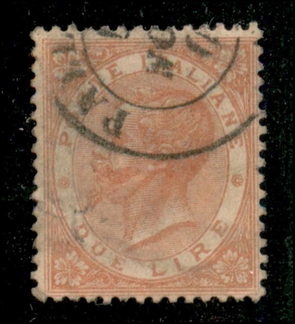 1863 - 2 lire De La Rue (L22) usato a Palermo (900)
