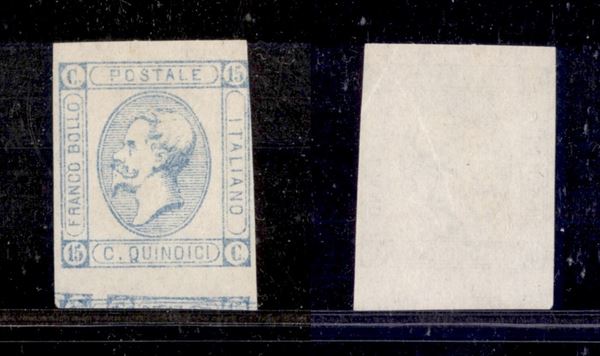 1863 - Litografico - Resti di stampa - 15 cent celeste chiaro (12) senza gomma - toccato a destra in alto - parte di vicino in basso con doppia stampa (650+)